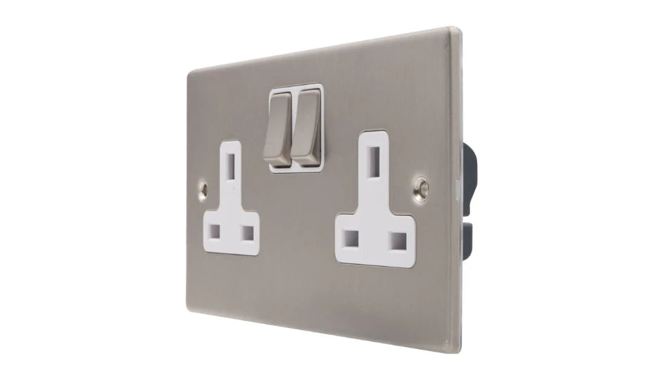 VPD1209DPSSW - Pro Décor 2 Gang 13A Switched Socket DP Stainless Steel White Insert