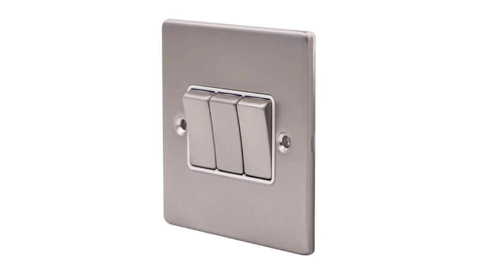 VPD1205SSW - Pro Décor 3 Gang 2 Way 10AX Plate Switch Stainless Steel White Insert